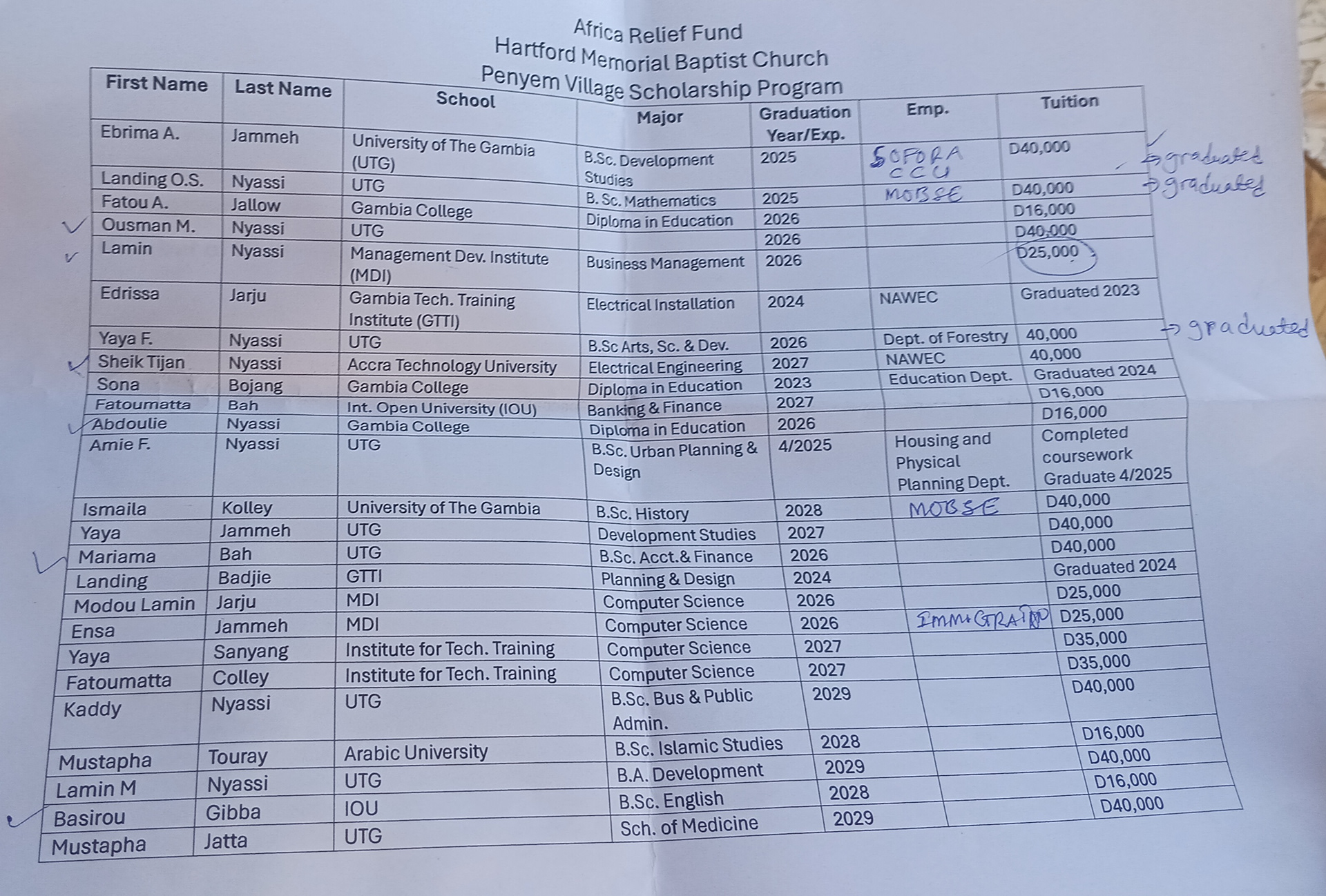Hartford has been sponsoring students in Penyem Village with scholarships for college and trade school.